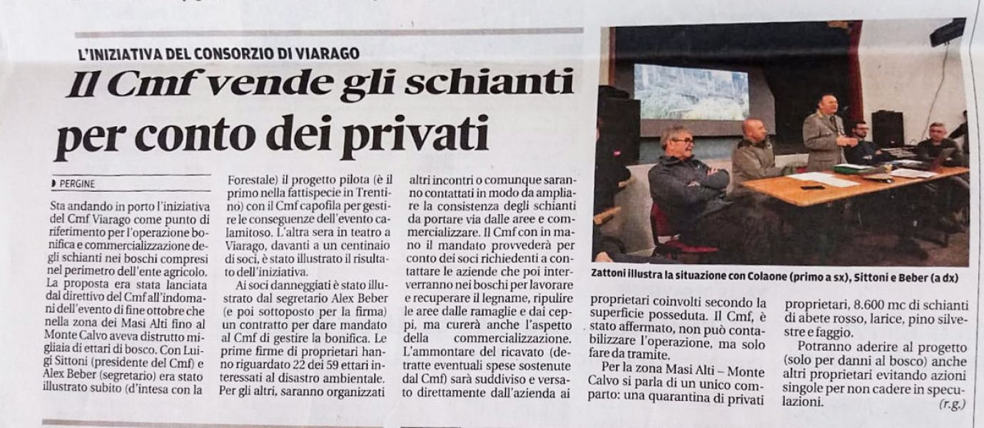 Dopo l'evento del 2018, alcuni soci si sono rivolti al Consorzio per capire se vi era la possibilità di aiutarli nella lavorazione ed esportazione del legname. Il Consorzio, quindi si è attivato ad ascoltare ed accogliere le esigenze dei soci, cercando, per le proprie possibilità, di essere strumento di risposta alle esigenze della collettività.