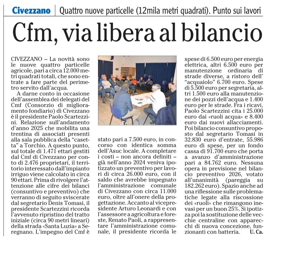 Dalla stampa: "CMF Civezzano, via libera al bilancio".