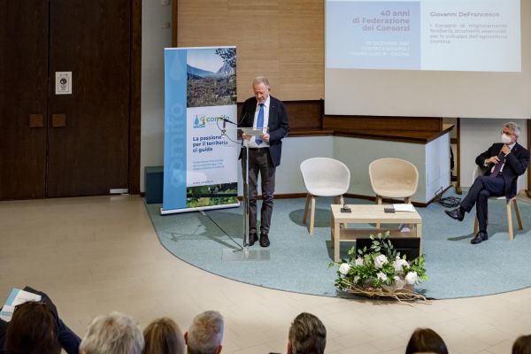 Gli interventi degli assessori provinciali Tonina e Zanotelli hanno infine ricordato come il Trentino ha potuto essere indicato come un territorio all'avanguardia grazie alla ricerca e ad una delle irrigazioni più moderne d'Italia. L'assessore Zanotelli ha ricordato l'importante apporto di sostegno della Provincia e l'insostituibile ruolo della collaborazione tra l'ente pubblico e la Federazione, che negli anni ha permesso ai consorzi e al nostro territorio di arrivare a questo punto di eccellenza. L'assessore Tonina ha sottolineato la lungimiranza della decisione di quarant'anni fa di dare vita alla Federazione, e la forza del suo modello cooperativo, pienamente parte della secolare storia dell'autonomia trentina. Un percorso di efficienza, collaborazione cooperativa e sostenibilità ambientale.