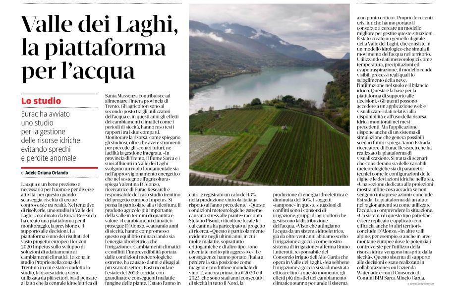 Dalla stampa: "Valle dei Laghi, la piattaforma per l'acqua".